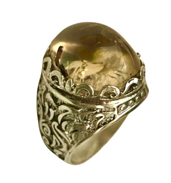خاتم نقرة وحجر الكهرمان الطبيعي