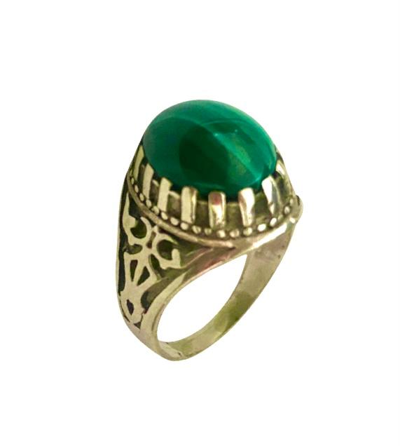 خاتم نقرة وحجر الملاكيت الطبيعي
