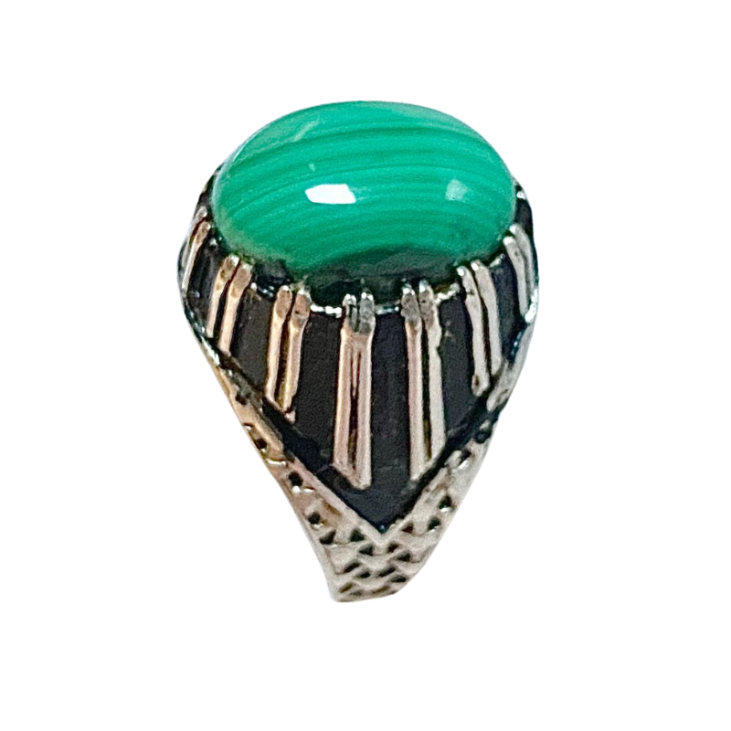 خاتم نقرة وحجر الملاكيت الطبيعي