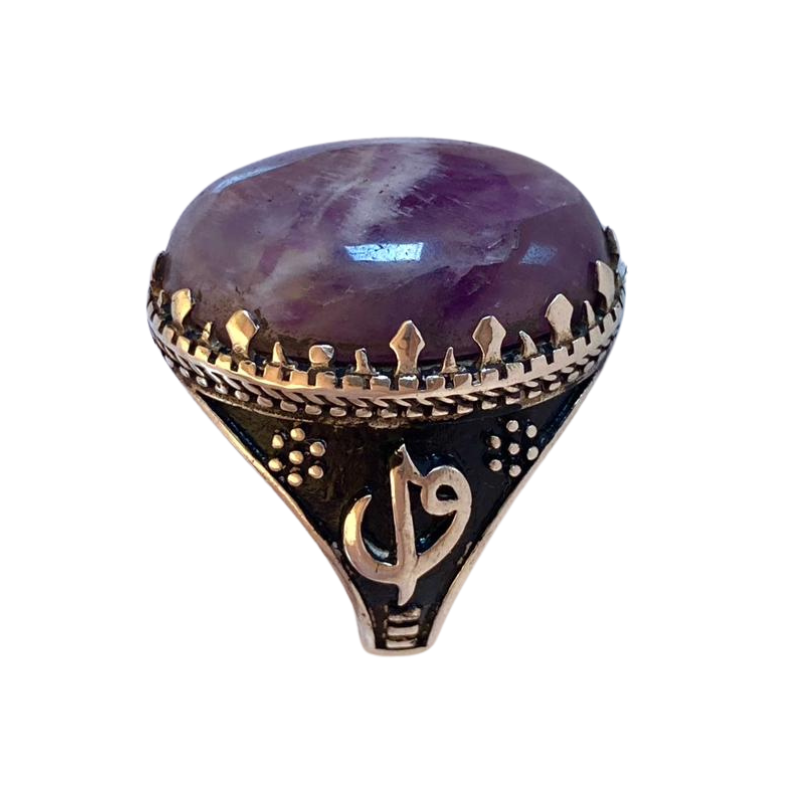 خاتم نقرة و حجر الأميتيست الطبيعي